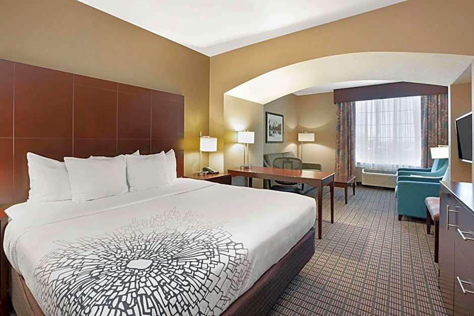 This mobility-accessible guestroom includes a separate seating area with a sofa bed.